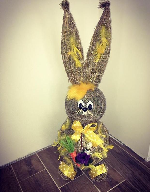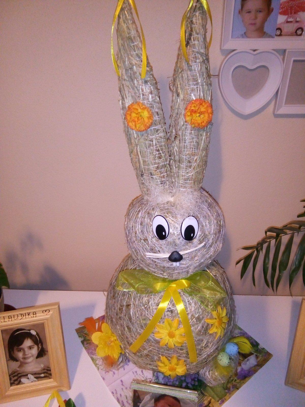 @nana36 jednoduche kupila som si 2 gule polistyrenove jednu vecsiu jednu mensia podla toho akeho velkeho zaja chces a na nozicky som kupila vajko polistyrenove a dala som ho napoly a ruky, usi su vystrihnute s kartonu potom som si vsetky tie casti postupne obalovala senom a omotavala nitkou kedze som nechcela aby bolo moc vydno tu nit ked som to uz mala obalene tak som to pospajala najprv som telo a hlavu spajdlami a do usi som dala po 2 spajdle a vpichla do hlavy a ruky som trosku tak ako ohla a prilepila tavnou pistolou a nozicky som ties napichla spajdlami oci a nos som urobila s vykeru a ostatok uz podla vkusu ja som nemala kvietky tak som si ich vyrobila a maslu som kupila a bolo no ja som za to dala cca 5€ ma stal zato co som kupila