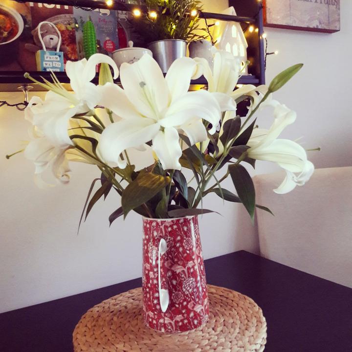 Z cajnika je vaza, kvety konecne po tyzdni rozkvitli a ja sa mozem kochat a nasavat tu vonu 😊