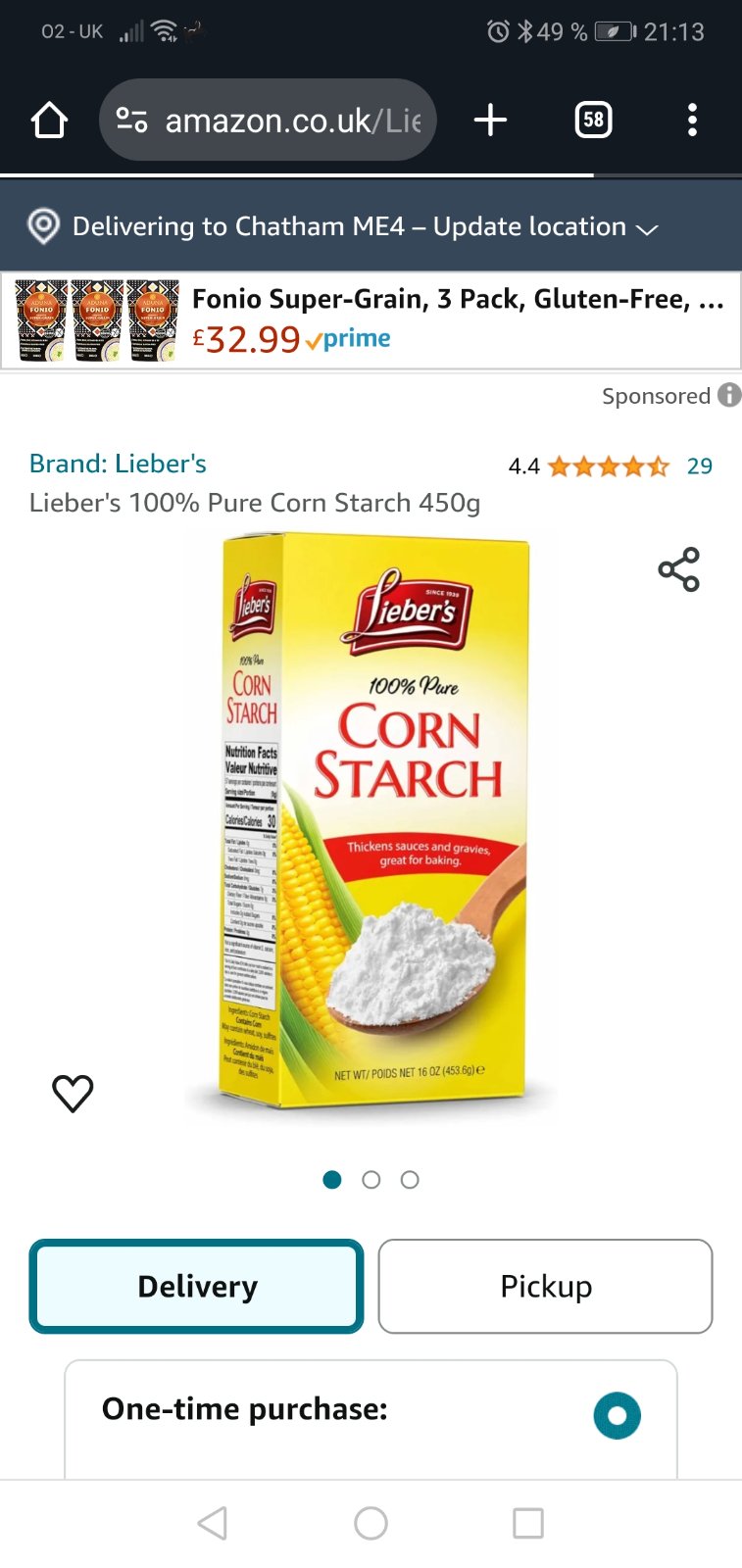 @lucindamax ano, to je cornflour. Presne ta co som ukazala ako priklad zo sainsburys. Na slovensku sa to vola (znacka Gustin) kukuricny skrob. V anglicku sa to vola cornflour. Mozno vas myli to 'flour' v nazve, ale je to skrob, ved uvidis, napis ked vam to dojde z amazonu, ci je to to iste 😃