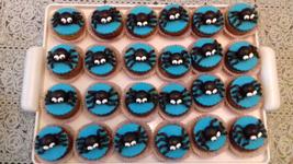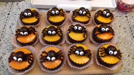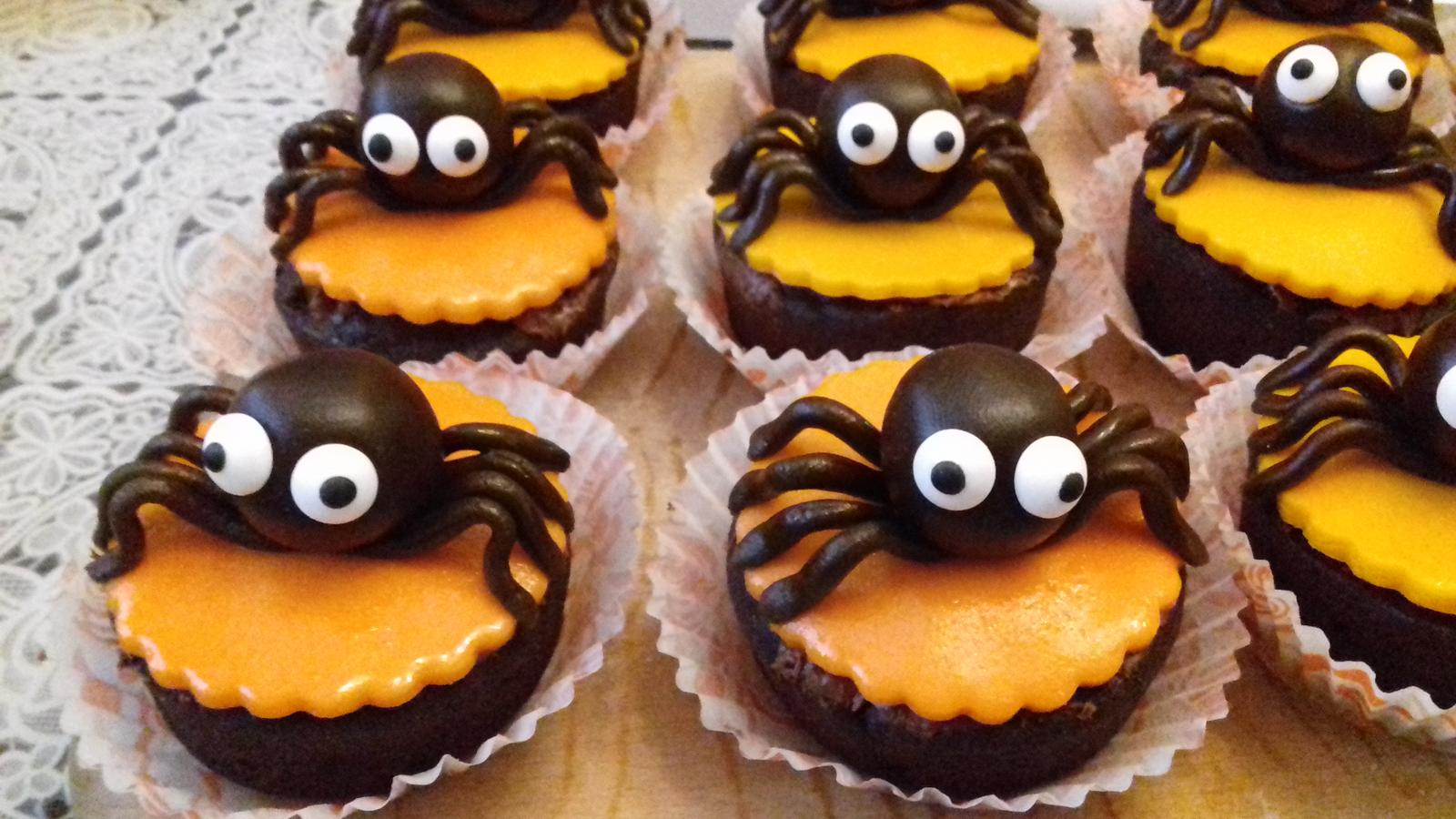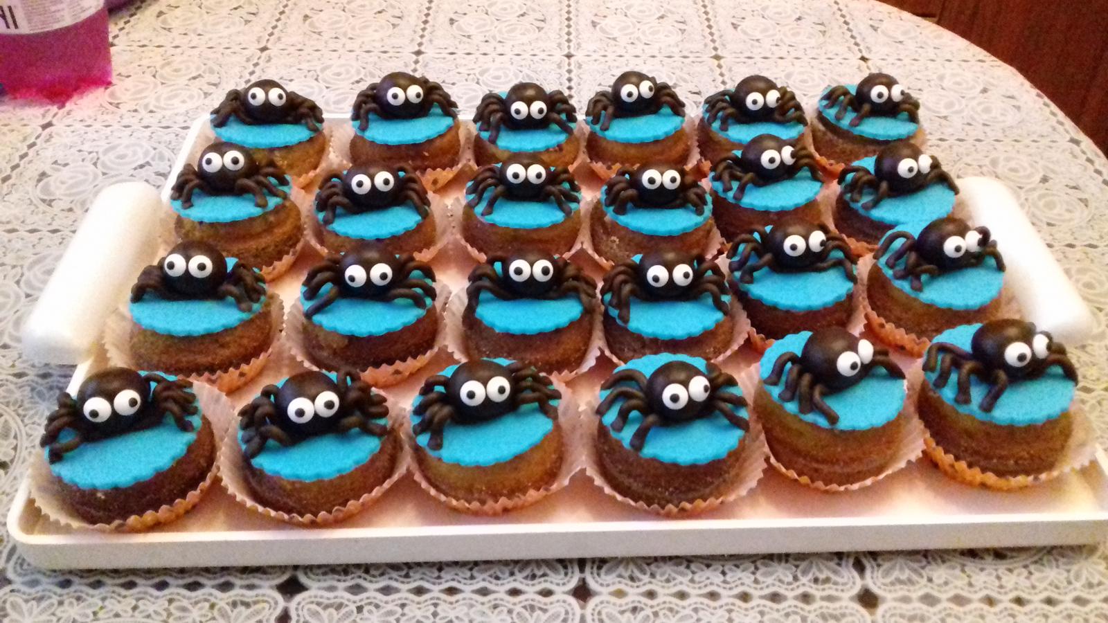 Takto obycajne nie som moc na modelovanie ale zas na myffinkach inac ukaze... a este uvidim chcem duchov to len vyvalkas biely marcipan vykrojis kruch tak aby si zakryla celu muffinku a vkastne ten kruch das na muffinku a ono to ovisne okolo len trosku zvlnis aby to vyzeralo ako plachta napr a len urobis cierne oci to su take lahke rychlovky.