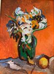 zátišie s bielymi a oranžovými irismi. dostala som od otca… 🥰