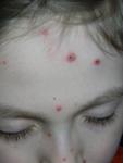 Ničím. Náš mal teraz na jar, mal hádam milión vyrážok, nedali sa mu ani spočítať, na tvári a hrudi vyše 80. Prvé dni ho preháňalo, vracal, horúčkoval, ale nedávali sme nič, len Dithiaden a vitamíny B, D a zvýšené dávky C. Na foto sa mu ešte len rozbiehali, ale hrozné boli už vtedy, zapálené, zahnisané, neverila by som, že mu nezostanú žiadne jazvy.