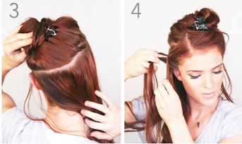 3. Vlasy si vzadu rozdeľ a zopni, ak ako vidíš na obrázku 3.