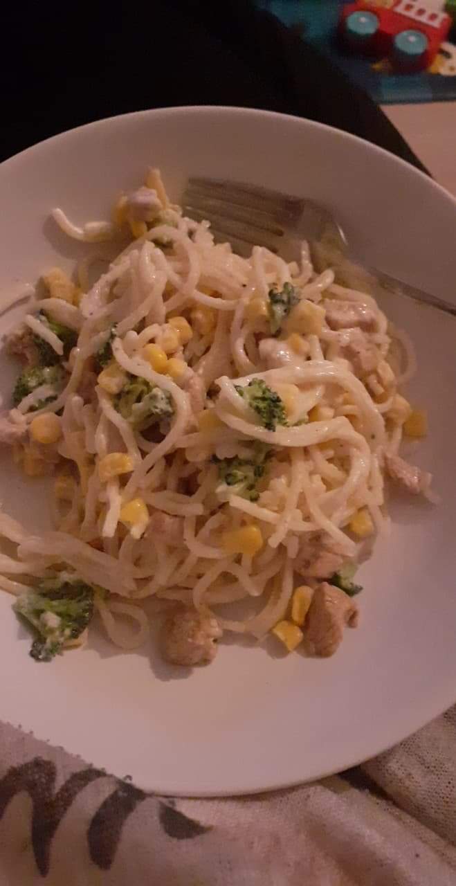 My sme mali minule s cestovinami kur.masom a kukuricou na smotane a bolo mnam ..foto nic moc ale velmi nam chutilo