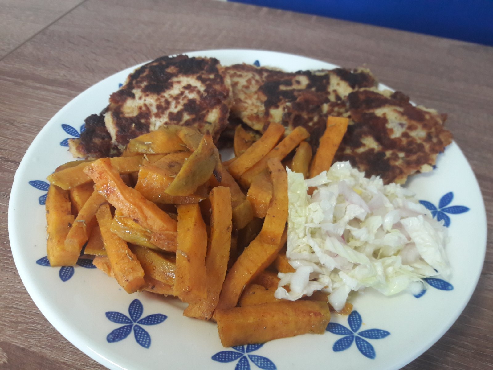 Karfiolove placky s batatovymi hranolkami s čínskou kapustou