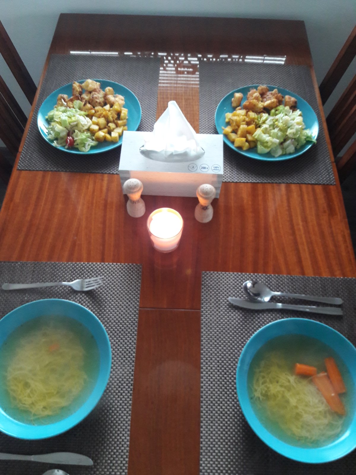 Vyvar s domacimi rezancami, karfiol peceny v rure so zemiakmi a salatom