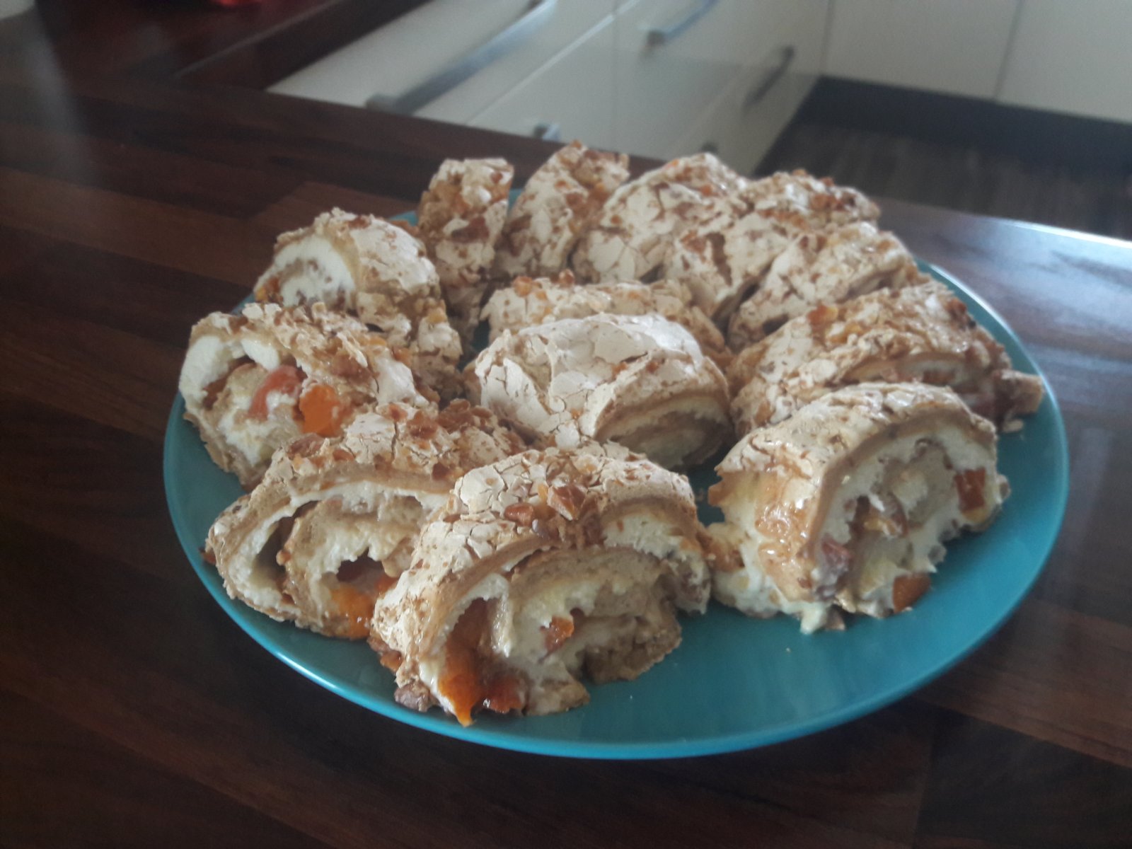 @ikaika robila som podla tohto, namiesto vinneho octu som dala citron a namiesto zlateho klasu skrob a vrch rolady som posypala orechami 😉 plnka je syr philadelphia a slahacka plus trochu cukru a ovocie 😊