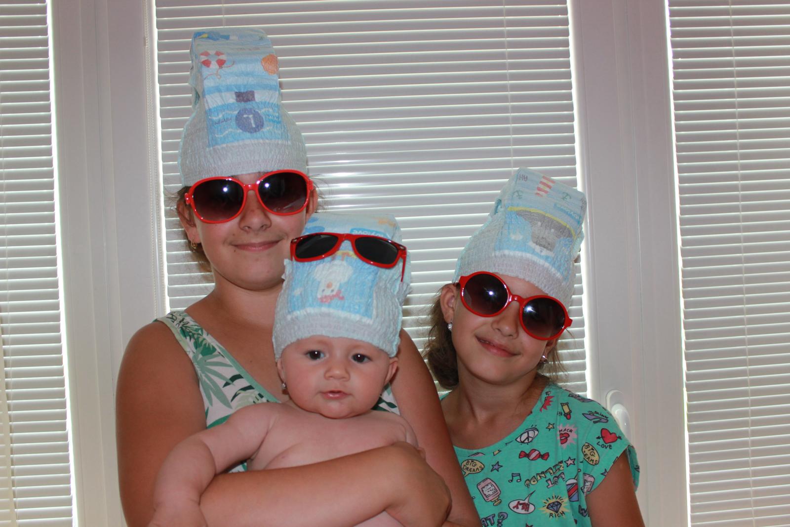 Tu sme si užili kopec zábavy. Ako prvé dievčatá otestovali ich pružnosť. Natiahnuté na hlavách vyzerali zábavne.Veľmi dobre a ľahko sa naťahujú, aj okolo nôžky držia pekne tvar, majú pekné obrázky. Po použití len roztrhneme v bokoch a gaťuše sú dole. Testované na 4 mesačnej, 7kg dcérke. Sme spokojní.