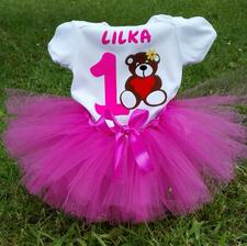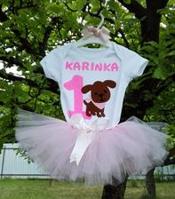 Body s potlačou, tutu suknička, čelenka a papierová girlanda - všetko spolu zladené pre dokonalú oslavu 🙂