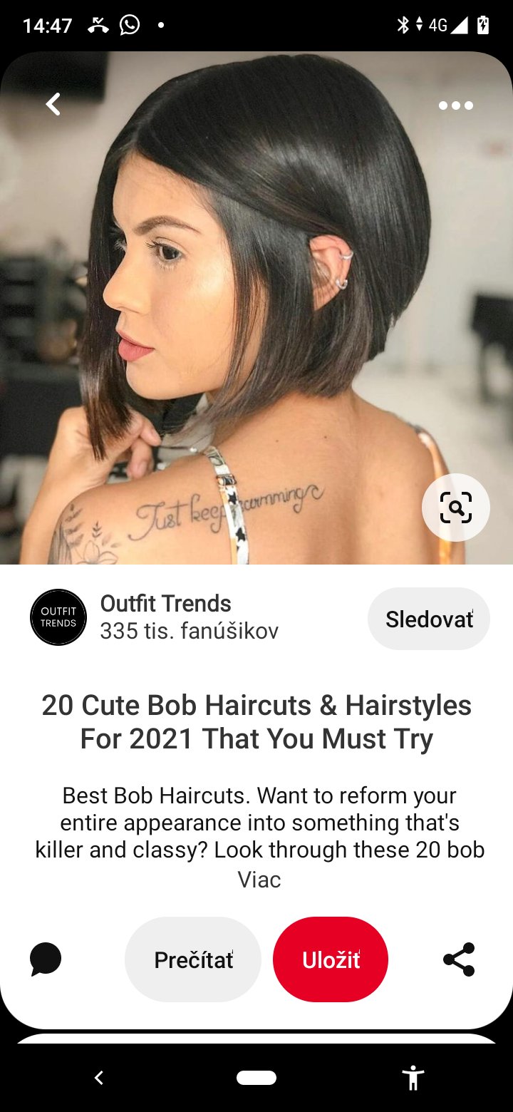 presne takto ti ja tiež vidím.Mladym nechám dlhé, ja si s krátkymi viem poradiť už ich mám 25 rokov..skúšala som dlhšie, ale mam jemne vlasy vyzerám ako kura a ta úprava určite viac treba upravovať dlhšie u mňa ako krátke.struhat chodím každé 2 ,3 mesiace ale kaderníčku mam tiež v rodine nestojí to zas tak veľa.Boky mam vystrihane ,mne sa to veľmi páči, aj keď sa nájdu ľudia čo povedia nechaj si dlhe ..uhm to ma asi v dlhých nevideli ..mam ich svetlé ale tebe pôjdu aj tmavé..takto to mam ako na fotke ,podľa toho má strihá..umývam 3x do týždňa, fén a vosk a lak ..niekedy dám na strapato a to omladi..