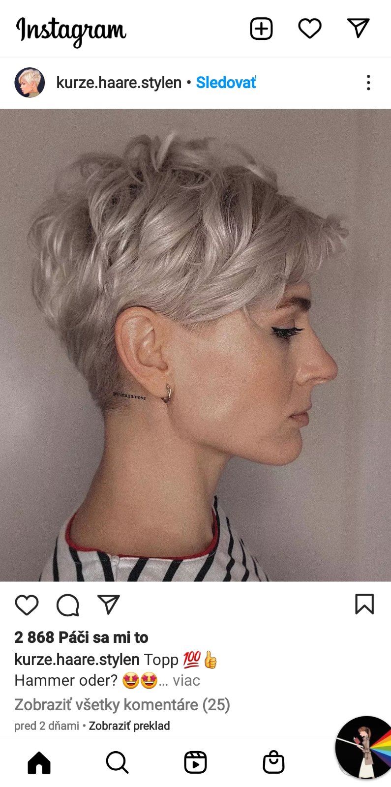 Ja mam tiez kratke, podobny strih ako pridala @mamkababkajanka a mozem ti povedat ze sa urcite necitim ako chlap, ani ako stara tetka a praveze naopak, je o mna vacsi zaujem ako bol s dlhymi 😀😀