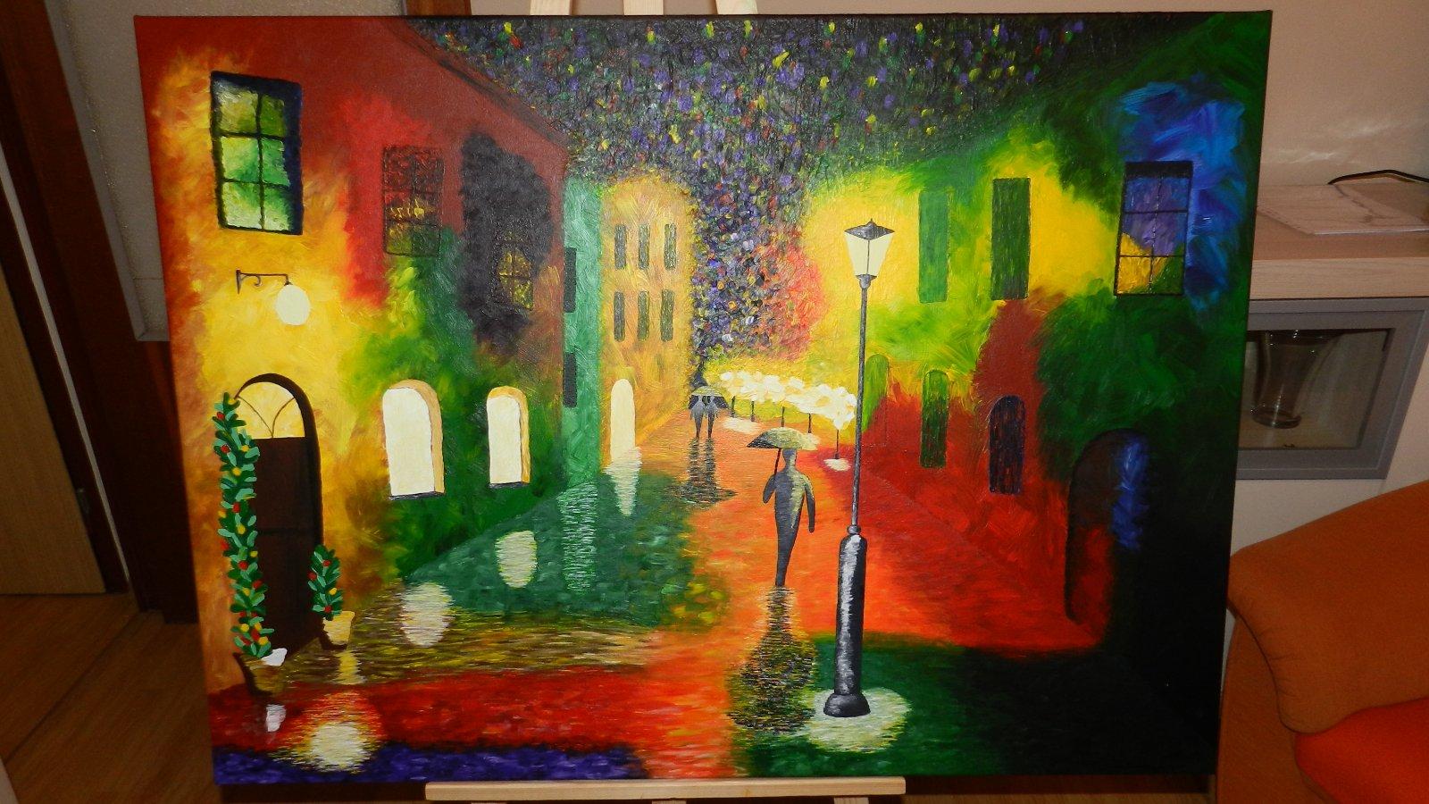 Fosforová farba na lampe, okná v ktorých sa svieti a aj hviezdičky keď sa pritmie sa objavia.