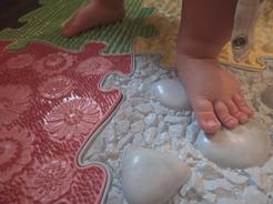 Podložky testoval môj malý syn ktorý sa učí chodiť i 3 ročná dcérka a samozrejme my rodičia a každá návšteva čo k nám prišla. Dizajn je zaujímavý a funkčný farby su pre deti lákavé a zároveň niesu gýčové či moc krikľavé čiže podložky sú pekné i v obývačke ;) Vyhotovenie je dostatočne pevné hrubé jednotlivé štvorce držia pekne pripnute k sebe zostava sa nerozpadá. Textúra je dostatočne členitá čiže masážny terénny efekt nožičky pocítia a neni to nepríjemné po nich chodiť. Malý syn sa zabavil i ich skladaním a obhrýzaním materiál je fakt príjemný štvorce sú ľahké.