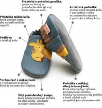 Reflexné zóny chodidla sú počas chôdze stimulované, čo má veľmi pozitívne účinky na celé telo, Prírodná koža veľmi dobre dýcha, nožičky dieťaťa sa nepotia a nehrozia plesňové ochorenia.