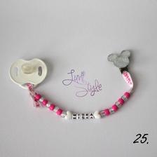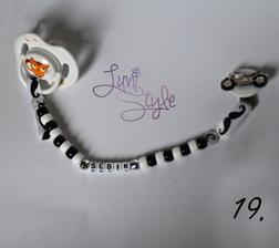 Originálne ručne robené klipy na dudlík. Kreativite sa medze nekladú, stačí sa pozrieť na moju facebookovú stránku a vybrať si farby korálikov, stužku, ozdôbku na klip a meno dieťatka.