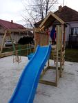 @josephine15 sused ho ma uz od minuleho roka ale len malicke vo vyske 90cm. Nasa dcerka sa k nim chodi skoro kazdy den hrat. Vyzera stale dobre. Postavil ho za par hodin. Aj ked on ho nechal nenatrete tak je jasne ze to drevo casom zmeni farbu.