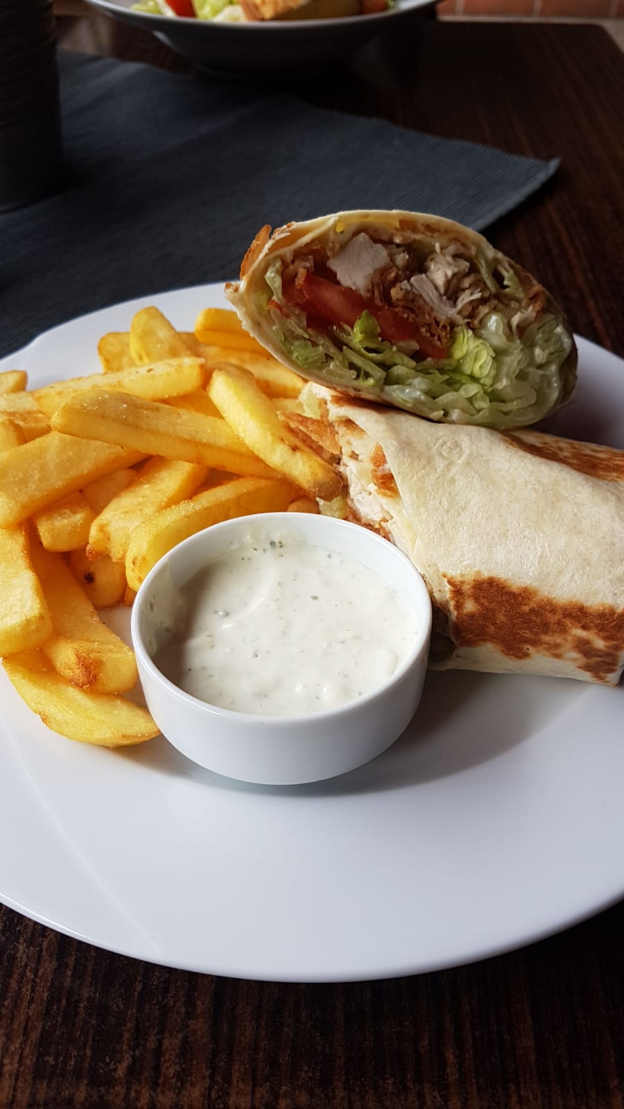 “ Zhresili”sme v Ciferi 🙏🏻😆 kazdopadne, domaci wrap, domace hranolky (teda, nie mrazene) a domaca tatarska (bolo poznat👍)