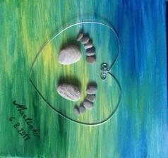 Kamarátke pre malého maľovaný obraz (pozadie) akrylovými farbami na plátno. Namiesto blahoželania k narodeniu dieťaťa. Pozadie sa môže meniť vzhľadom na pohlavie🙂