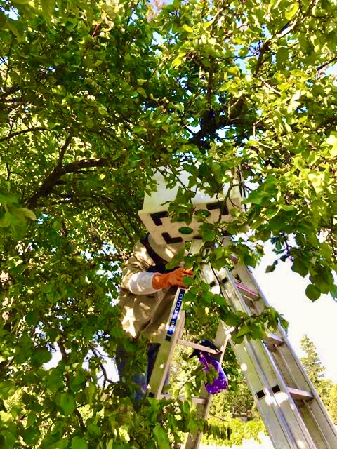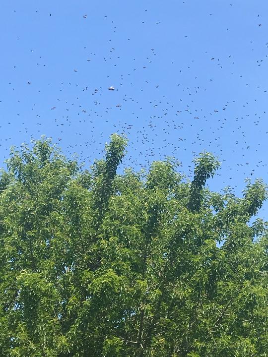 13:20 - Ocko ma volá von sa pozriet, vyrojili sa nám včely , plna záhrada, krasa to bola sledovat ako sa postupne presúvajú záhradou a hľadajú miesto kde sa zložia ... lietali v takých kruhoch , človek keby tomu aj rozumel dávalo by to zmysel ale včely sú v tomto ich dorozumievani tancom úplne neskutočne ... “ona zatancuje nejakým smerom a ostatne vedia čo to znamená” (zjednodušene napísané). Obrovské šťastie že sa usídlili na strome. Vybrali si marhuľu. 14:30 - Obliekame sa a vravím Ockovi, že je to môj roj idem si preňho. Pochopiteľne bez jeho pomoci a jeho rád by som to nezvládla. Pripravil jeden ramik z ich úľa , a ten mi mal pomôcť aby naň prešli. Ale teda pristavil rebrík , trosku zadymit, postriekať vodou ... prilozila som ramik k roju, liezli mi po rukách (mala som rukavice aj včelársku bundu) no boli všade naokolo hoci boli i tak stále pokojne ... zážitok - hlava a ruky strcene v roji ... pár cm od toľkých včiel ... vôbec si ma nevšímali , iné starosti mali ... keď už ramik celkom oťažievať pod váhou včiel ,,, Ocko priniesol rojacik, ktorý sme umiestnili k roju, hakmi zachytili p konáre a preložila som ramik už plny včiel do rojacika ... čakali sme či ostatne včely pôjdu za nimi ... a veru aj išli ... dvakrát sme rukou nabrali za hrst včiel a vložili do rojacika ... a postupne tam vliezli všetky. o 18:00 boli včielky v novom úli . Môj prvý odchyteny roj. Krasa . Radosť. K 5 Mame farmarke koziarke môžem pripísať aj včelárka ❣️🌸