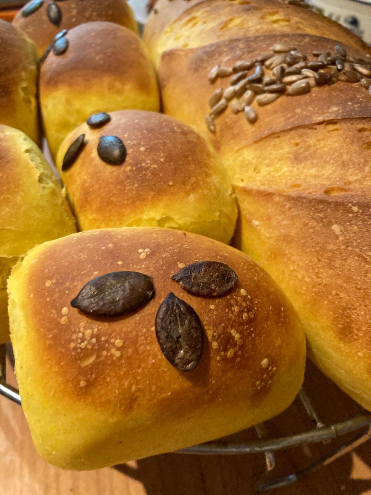 Kurkumove kresby v striedke toastu ako zlte listy na konári stromu ... kurkumovy sendvič a žemlicky.