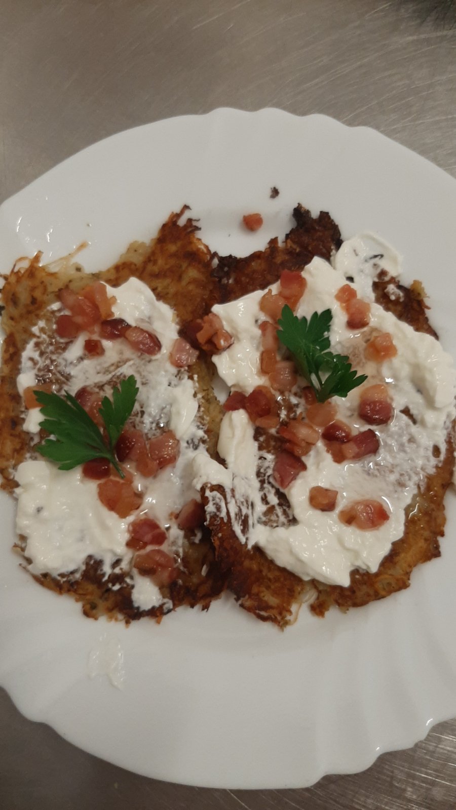 Zemiakové placky s kyslou smotanou a slaninou