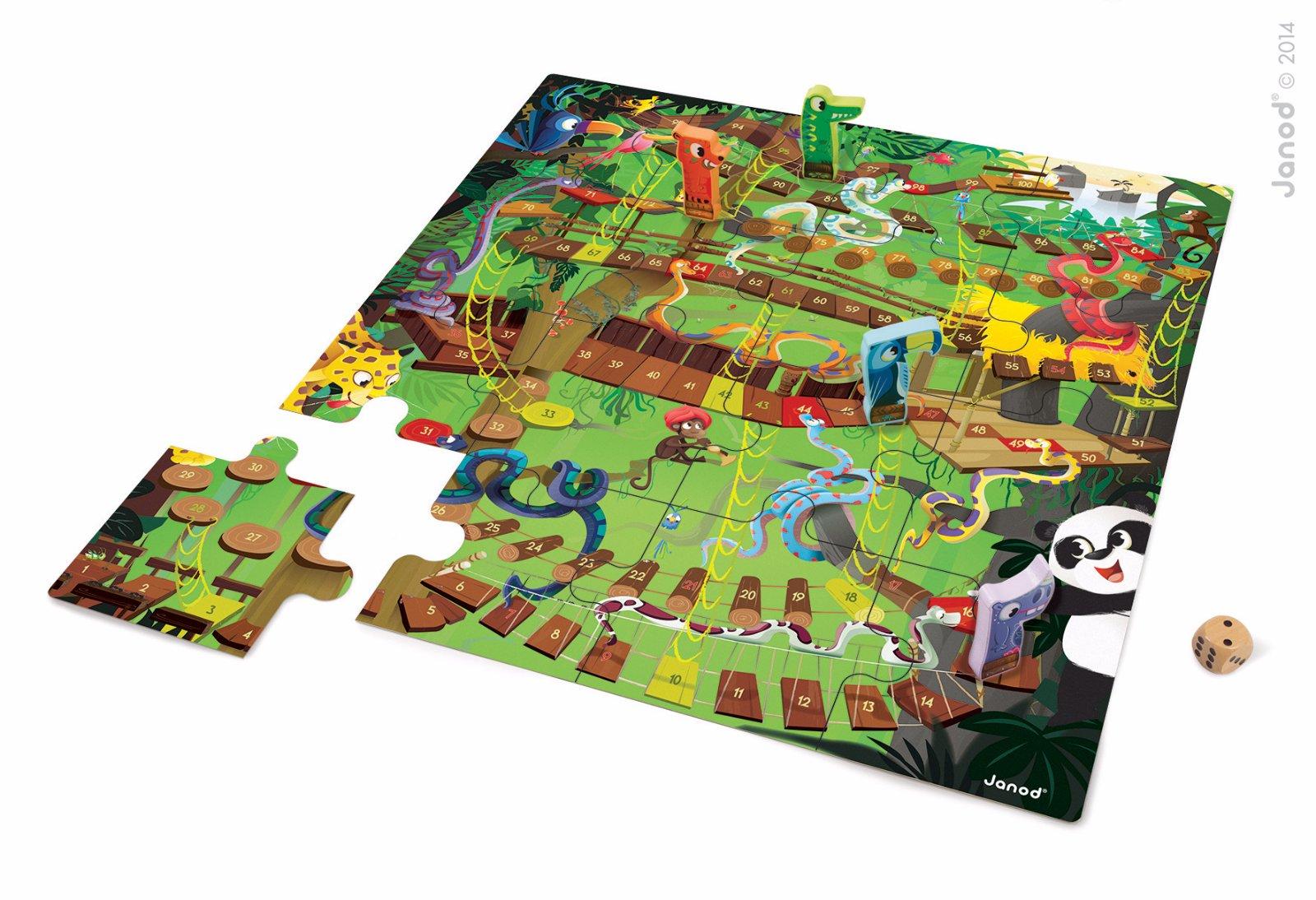 JANOD 02790 detská spoločenská hra v angličtine Jungle Snake and Ladder Game & Puzzle od 3 rokov
