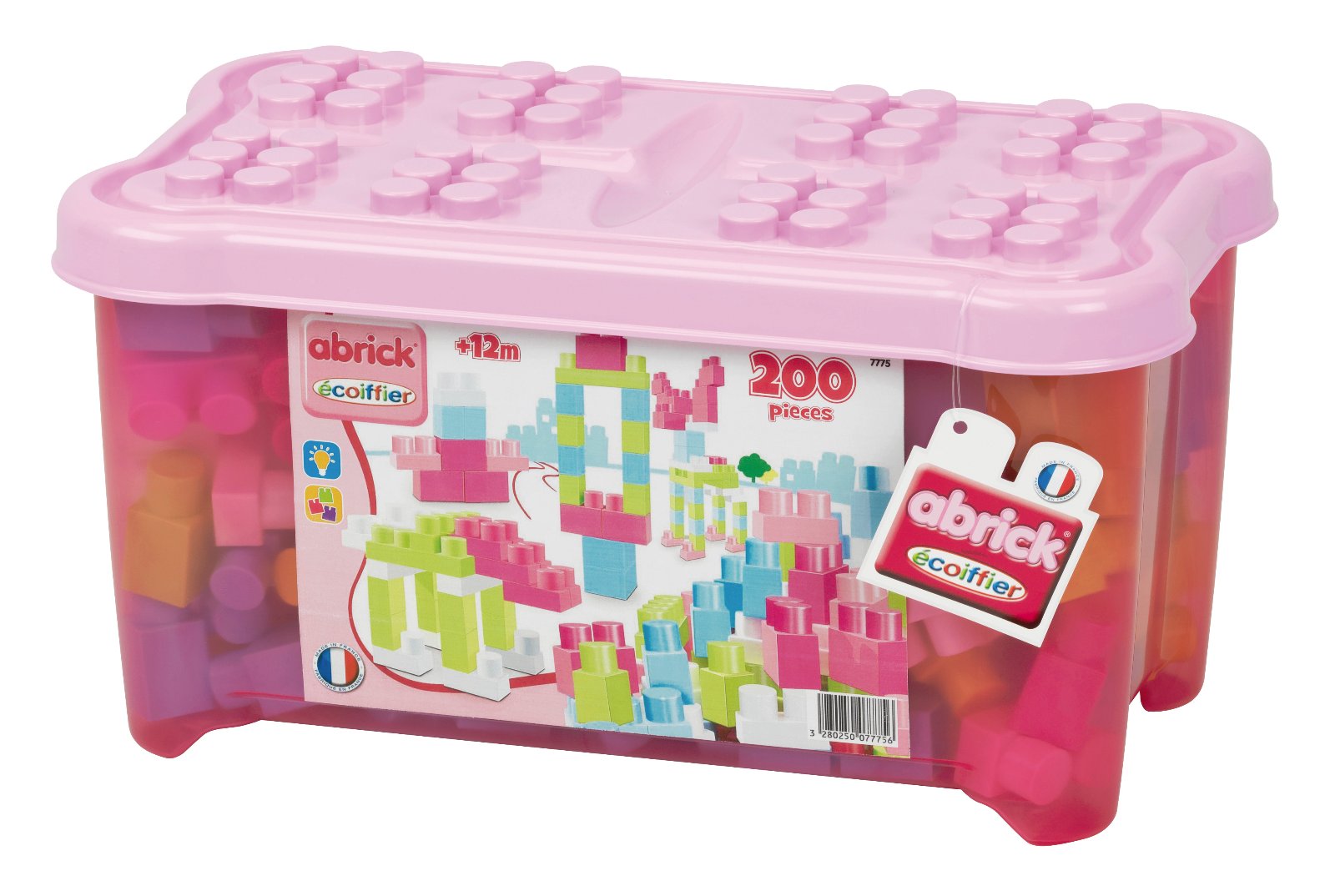 ÉCOIFFIER 7775 stavebnica Maxi Abrick vo veľkej ružovej nádobe 200 ks od 12 mesiacov