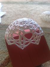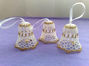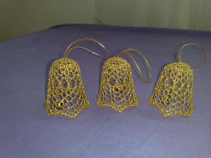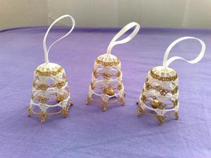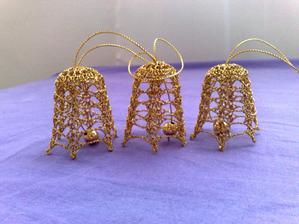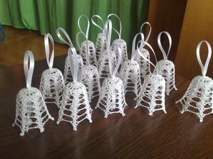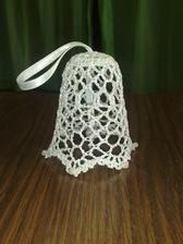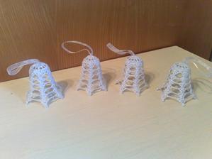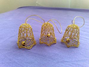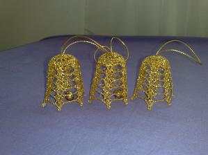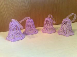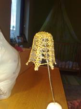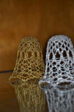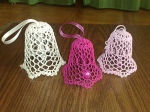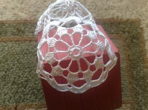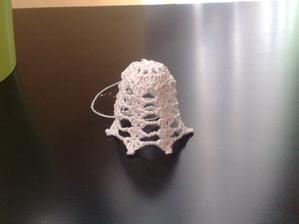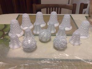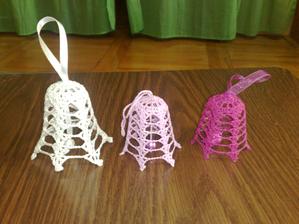 @leanol ja som to najskor skrobila tak ze som si to namocila do skrobu a potom velmi tazko natahovala na tie polystyrenove formy ale kedze sa mi nechcelo takto s tym babrat tak si to este suche natiahnem na formu a potom to normalne stetcom poriadne naskrobim aby to bolo cele mokre a aj tak sa mi to osvedcilo ze to super drzi tvar ale je lepsie si dat polystyrenovu formu do priesvitneho sacku bude sa to lahsie davat dole a na farebnom aspon neostane biely poystyren ;) ten zvoncek je vysoky 5,5 cm a dole siroky 6cm