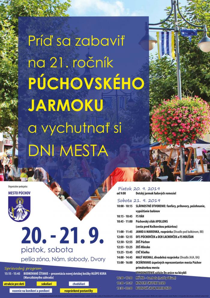 dávam do pozornosti blízkemu okoliu môjho mesta Púchov, že zajtra 20. 09. 2019, ale najmä v sobotu 21. 09. 2019 sa v Púchove bude konať 21. ročník Púchovského jarmoku, verím, že počasie bude priať 🙂