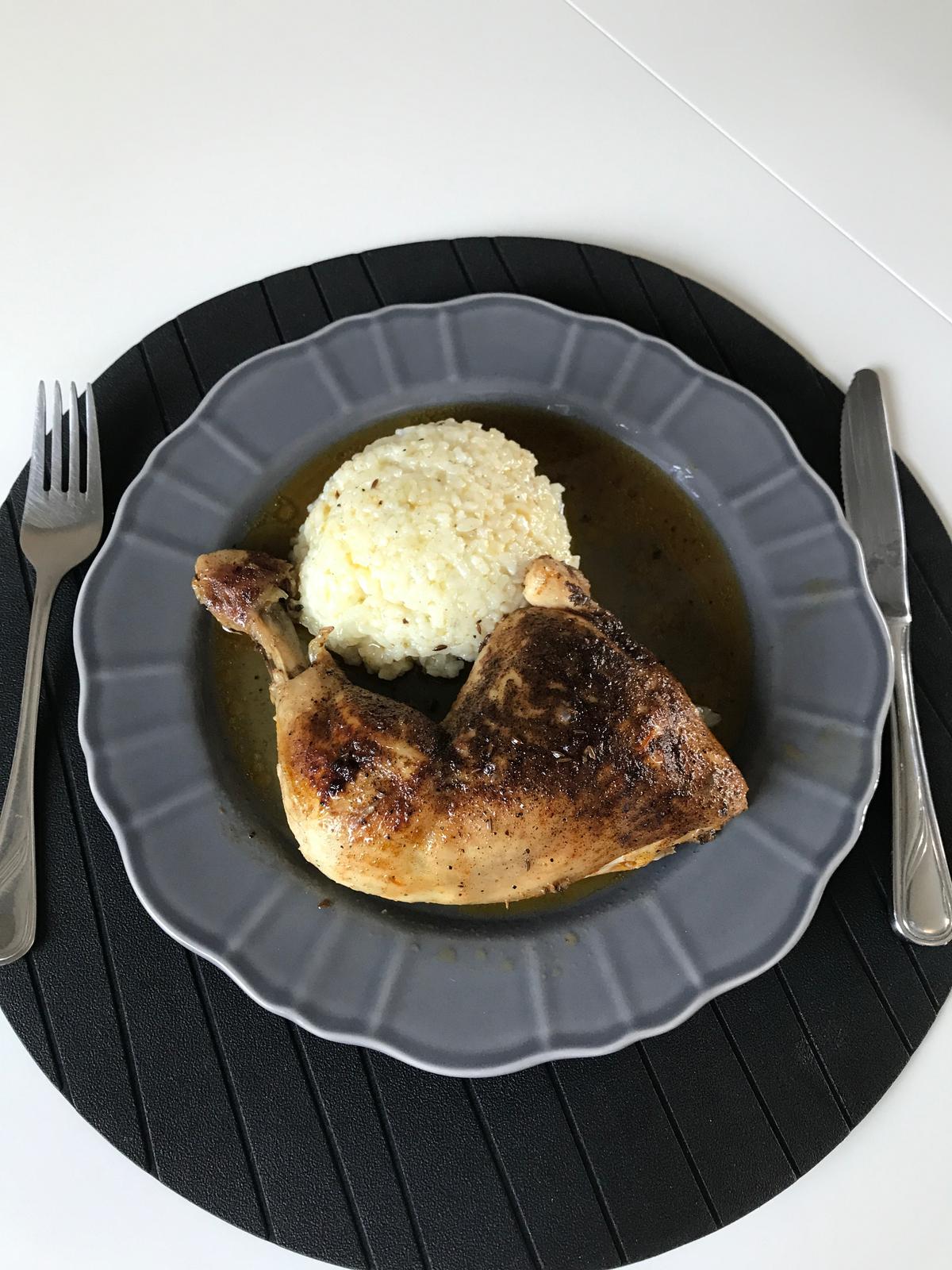 Pečené kuracie stehno 🍗 a ryža 🍚