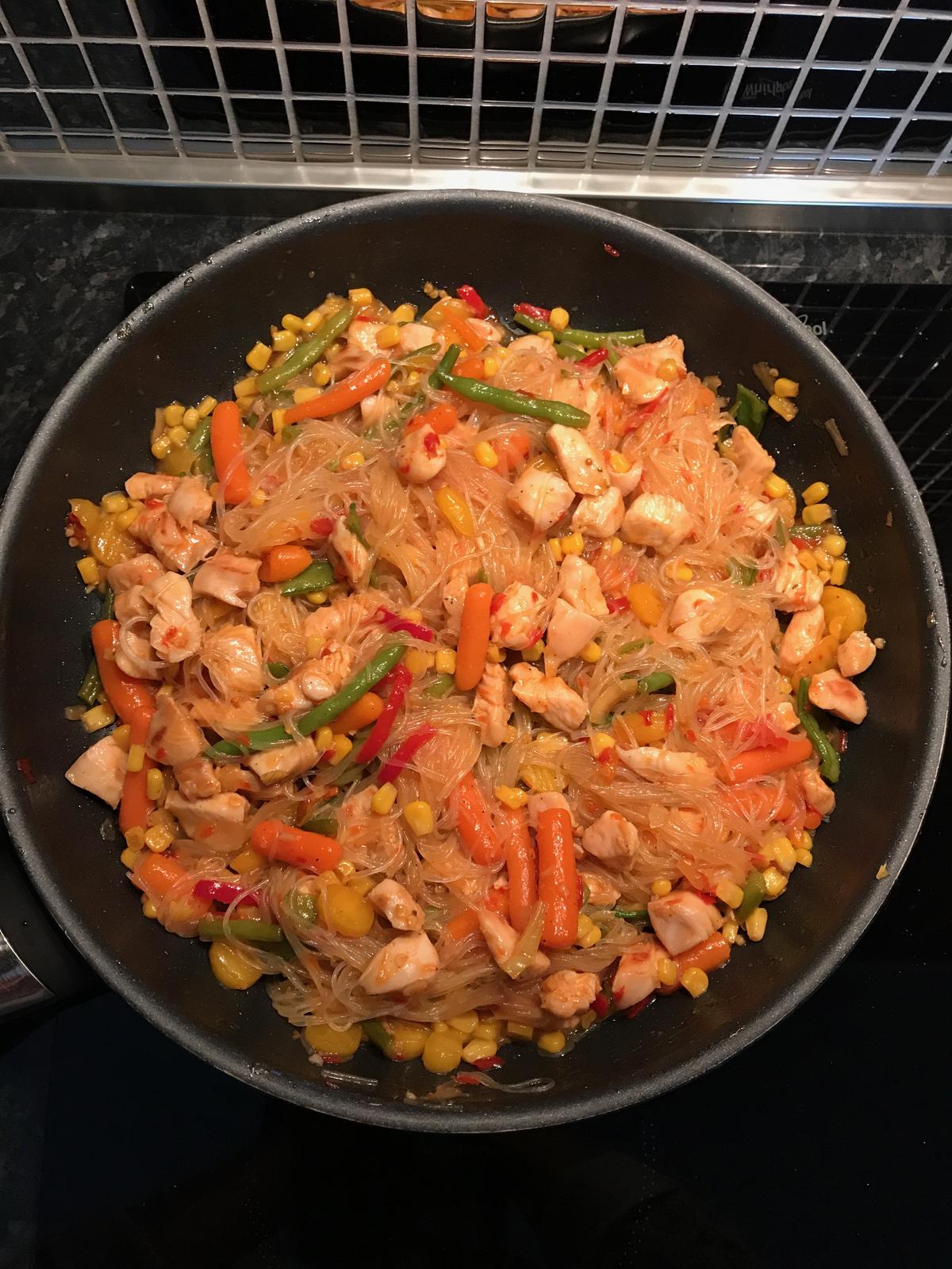 autor@bambulka9988 ja kupujem sklenené rezance, tie uvaris podľa návodu, kuracie prsia sa osmahnu na cibuľke, pridas čínsku omáčku (ja dávam sladko-kyslú s ananasom) opatrne s ňou lebo dosť stipe 😂 a potom sa pridá mrazená zeleninka a celé sa to zmieša. Koreniny podľa chuti čo máte radi. Nie je od veci to masko mat v tej omáčke pár hodín v ladnicke 👍🏽