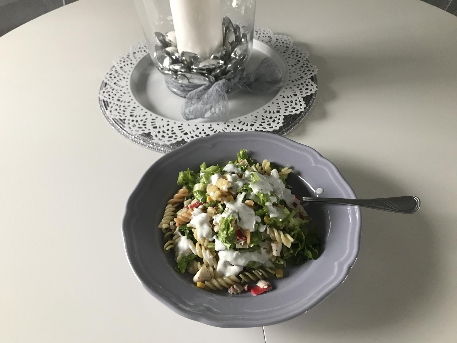 Cestovinový šalát so surimi tycinkami a jogurtovym dresingom 🥗🥄