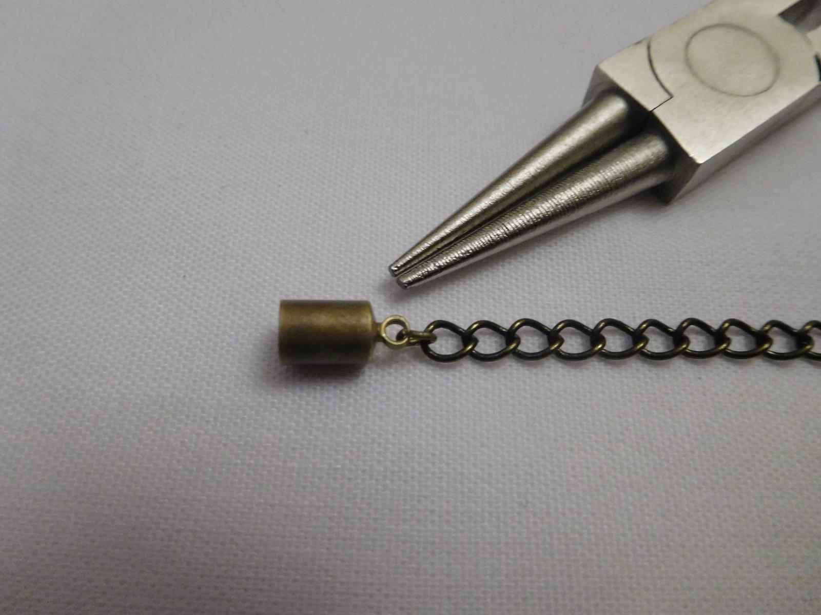 Keltovacími klieštami si 3mm krúžkom spojíme lepiace koncovky s retiazkou: