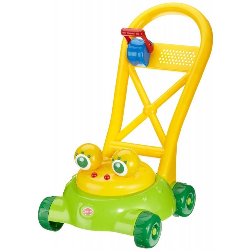 Veselá kosačka pre malých záhradkárov! Naplň hlavu žabky vodou, zatiahni páčku a popolievaj trávnik! Vďaka tebe sa bude trávnik zelenať až – až! Kolesá kosačky vydávajú mechanický zvuk. Hračka funguje bez batérií.