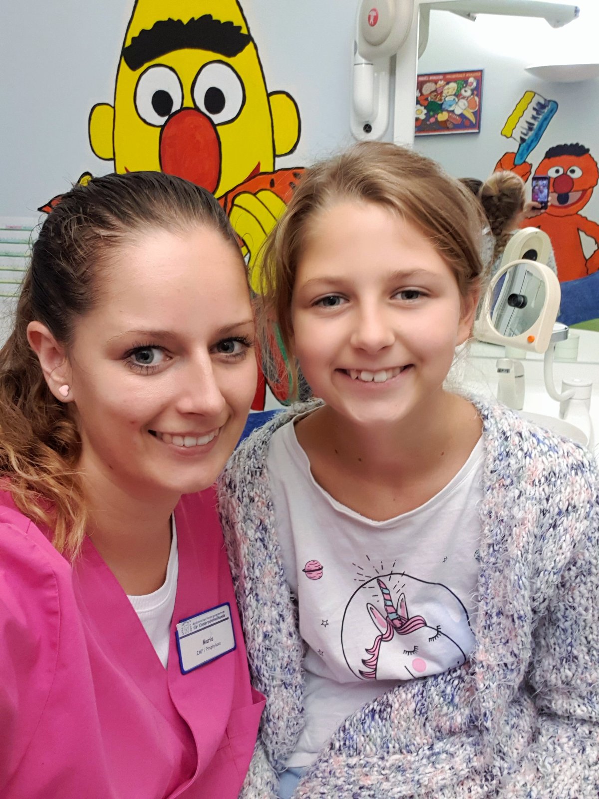 Prvý rok v škole a v práci bol naozaj šialený a ťažký. Ale kto to má v živote ľahké? V hlave som mala len jedno, že to robím pre našu budúcnosť. Pracovala som v detskej zubnej ambulancii, neskôr aj u zubára pre dospelých, aby som sa naučila niečo nové. Celé ošetrovanie detí je o trpezlivosti, hraní a zábave. Bolo jedno, aký som mala deň, snažila som sa vždy moju prácu zvládnuť čo najlepšie. Na tom si zakladali aj naše šéfky. Zvládnuť 3-ročné dieťa, ktoré nemuselo do narkózy, bolo úžasné a niekedy výkon hodný Oskara. Samozrejme, nie každé dieťa je ľahké, a na to sme mali 4 dni v týždni ošetrovanie v plnej narkóze, s rajským plynom, kde som taktiež asistovala. Naša práca nebola len o asistovaní, ale aj o prevencii, kde sme učili deti, ale aj rodičov, o ústnej hygiene.