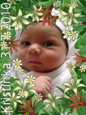Naše zlatíčko sa narodilo 31.júla 2010 v trnavskej pôrodnici s mierami 3780g a 51cm. Bol to najkrajší pocit v celom mojom živote. Kristínka, strašne ťa ľúbime...