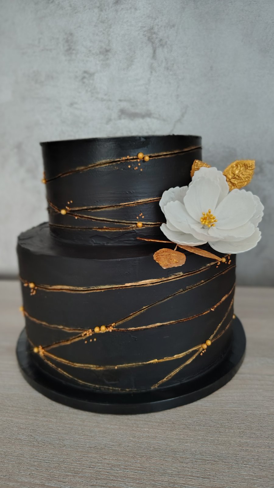 Spodok ...kakao korpus ...čoko krém ...banány a chrumkavá vrstvaVrch ...vanilkové cesto ....vanilkový krém ...jahodovomalinove compote