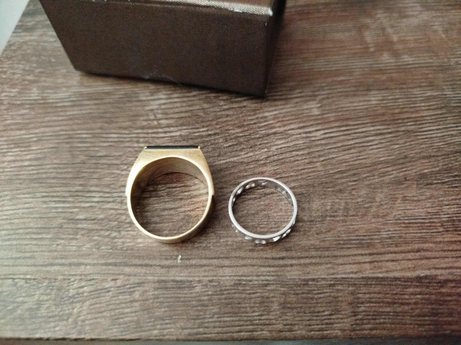 Našla som foto slabo vidno ten prsteň som dala na tavenie co mam na ten druhej ruke obrúčka je hladká jemne gravírovanie tam je čo mužovi chcú zvýrazniť....robili to niekde v Prahe to v inom zlatníctvo robili...potom mi volali z Čiech dozvedela som sa ze to je z Čiech...14 r to je...