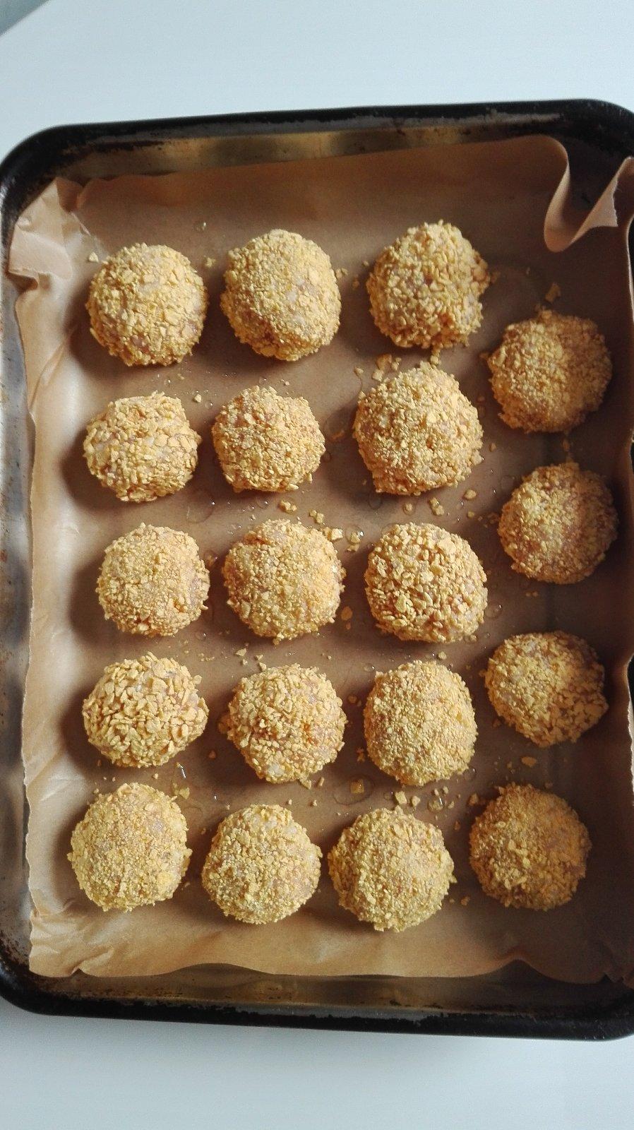 Kuracie nugetky so syrom a ovsenými vlockami v kukuricnej struhanke-pecene v rure.