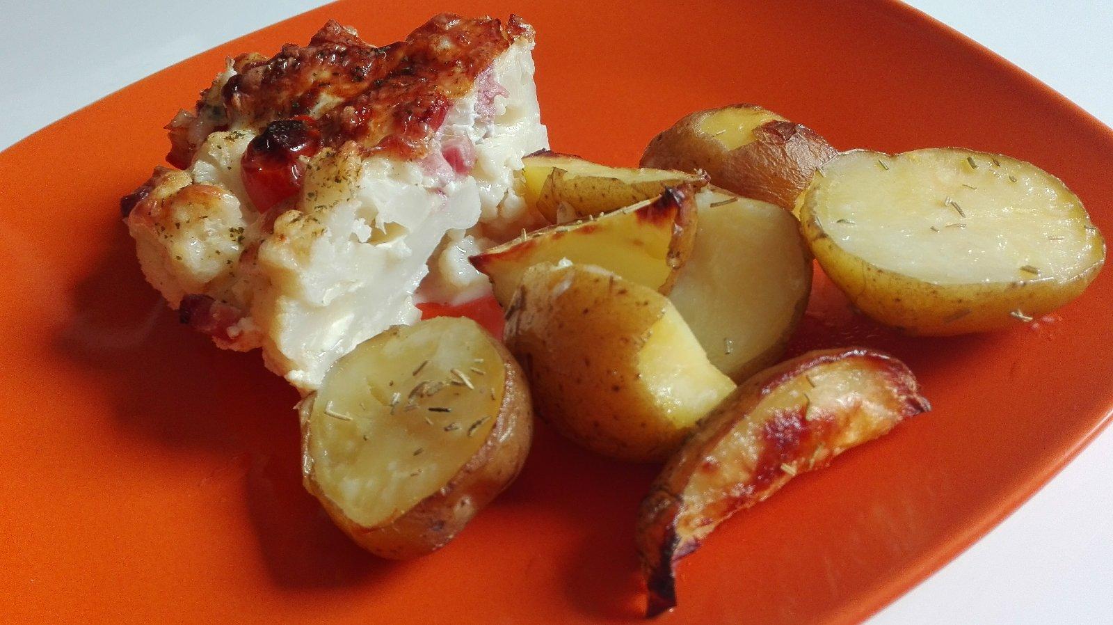 Zapekaný karfiol s obvarenými zemiakmi-zapečenými s cesnakom a rozmarínom v rure