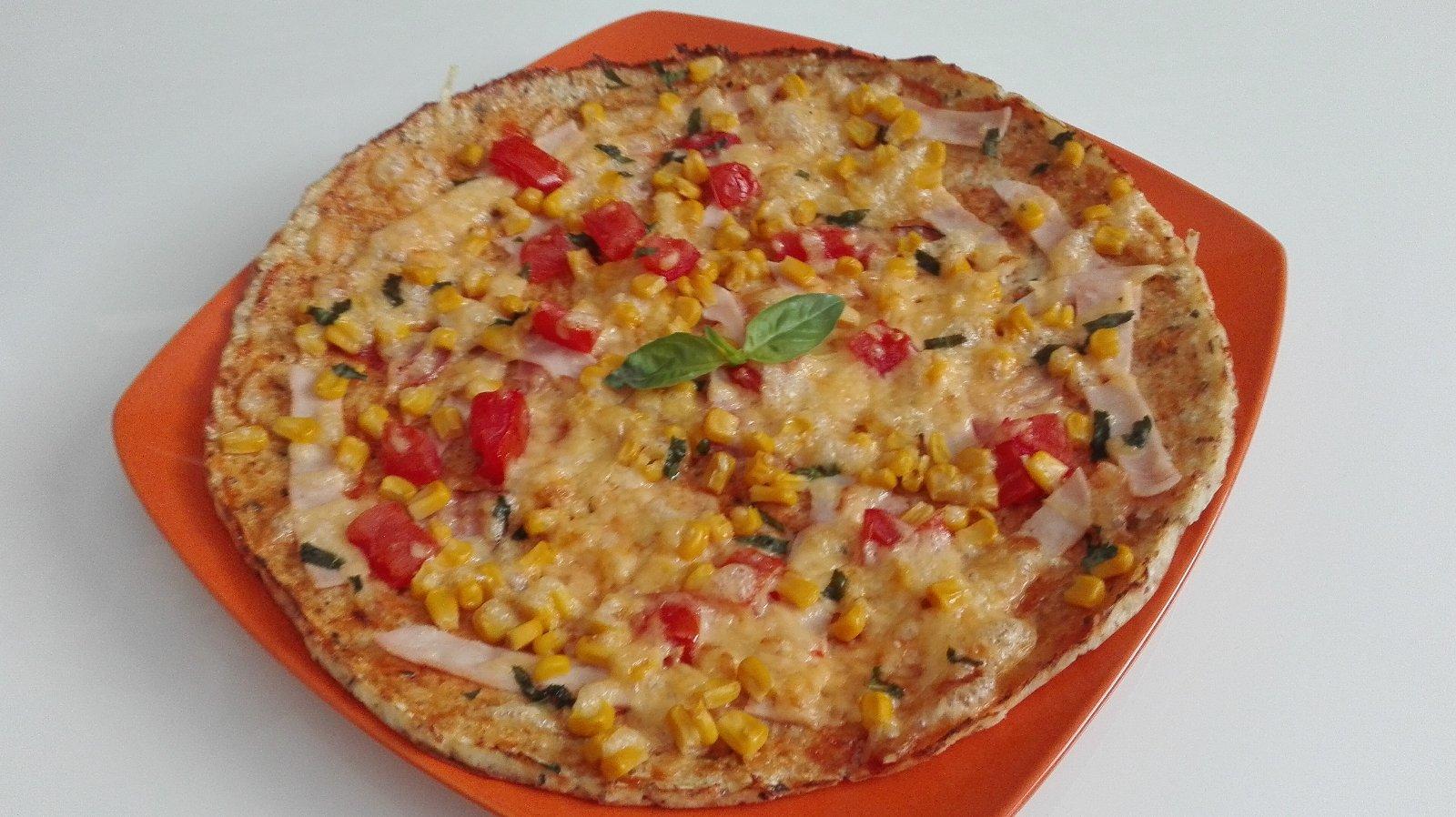 Pizza bez muky /korpus=karfiol,tvrdy syr+vajicka/