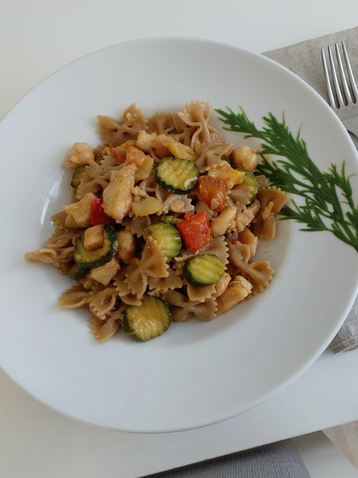 Celozrne cestoviny s kuracimi prsiami na medovej omačke so zeleninou