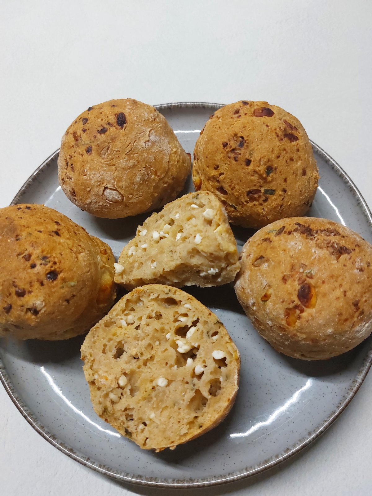5 PL celozrnna spaldova muka1ks cottage syr s pazitkou/pokojne aj iný/ rajo 180g1 vajce1čl pdpSpracujeme cesto je trochu lepive preto na dosku posypte muku a vytvarujte z cesta 5 guliciekPiecť v teplovzdušnej rúre na 180st.20min.