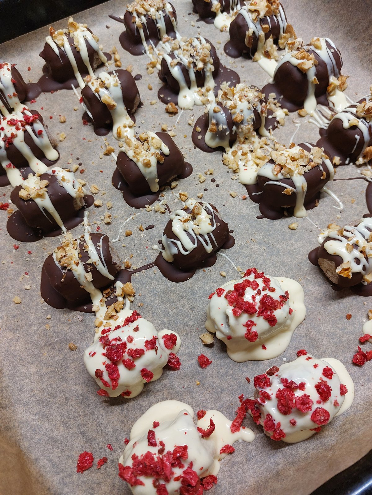 a 120g kokosu,vytvarujeme kocky,gulky ako chcete a mate radi😊dame do chladnicky na cca.1h.a nasledne olievame cokoladou a naspat do chladnicky na cca.pol hodinu😊