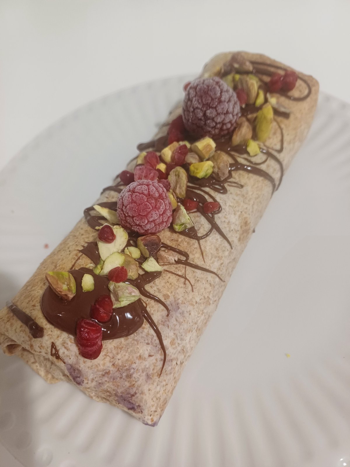 Zapekaná tortila s tvarohom,makom a čučoriedkami