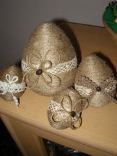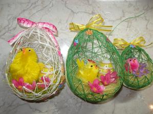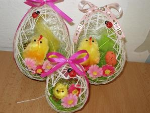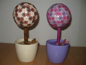 autorbabenky dakujem za pochvalu!tie stromčeky robim takto.na polystyrenovy kužel dam mikrotenovy sačok dole po okrajoch prišpendlim aj na vrch dam špendlik a omotavam bavlnkou.potom na´triem vodnym sklom. s tym treba robit opatrne lebo ked niekde kvapne a zaschne to tam nejde to dole.ja to robim na igelite a novinach.snad som trošku poradila