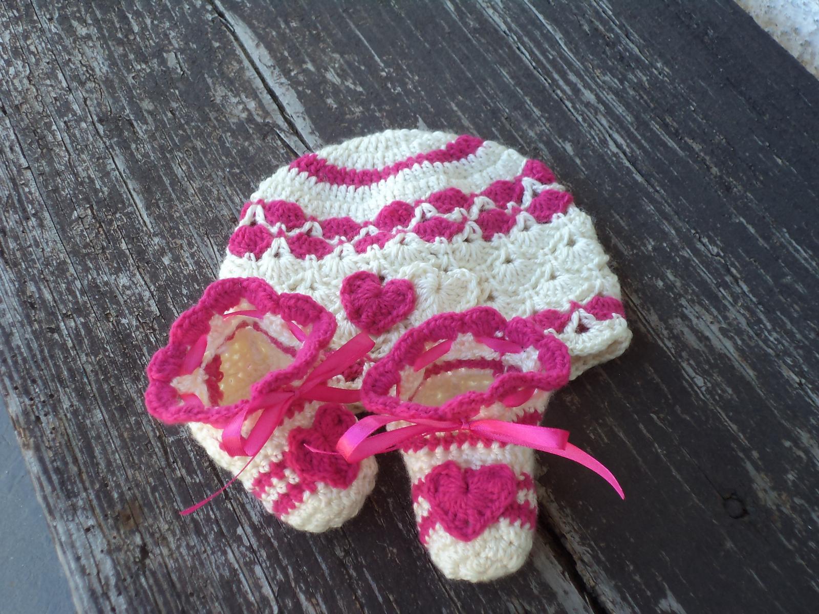 Ručne háčkovaná čiapočka a papučky ...:) veľkosť: 0-3 mesiace