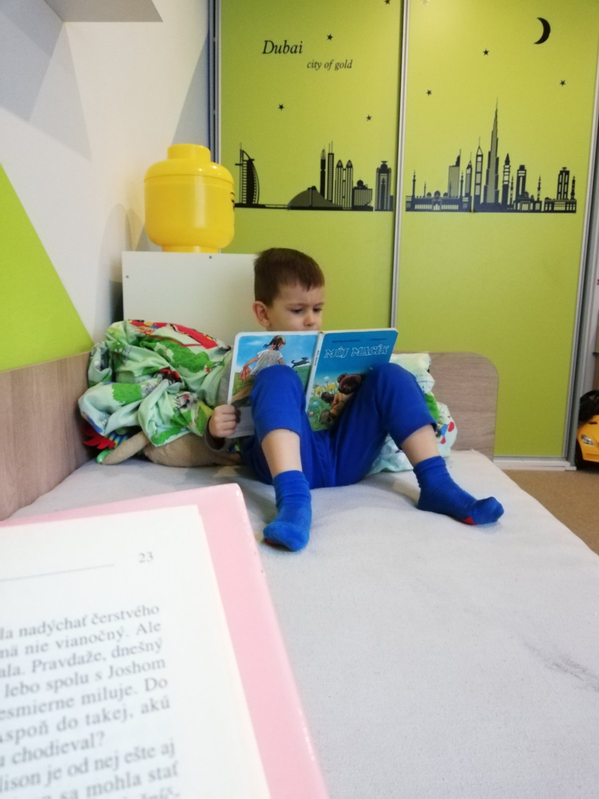 Milujem knihy... Stále mám nejakú rozcitanu. Učím k tomu aj moje deti. V nedeľu to u nás vyzeralo takto. Inak môj 3-rocny tu knižku už vie naspamäť, takže si číta sám 😉