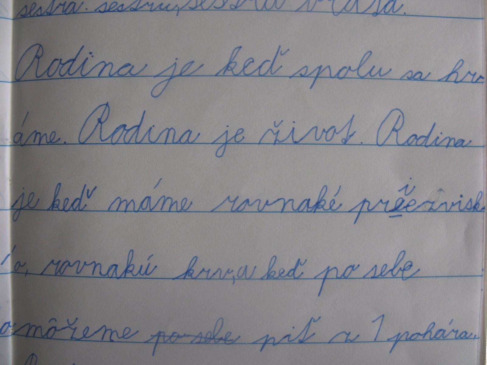 6ročná píše domácu úlohu na tému "Čo je to rodina?" Už popísala pol strany, pýta si ešte inšpiráciu od mladšej 3 ročnej sestry. Pýta sa jej: Čo je to podľa Teba rodina?