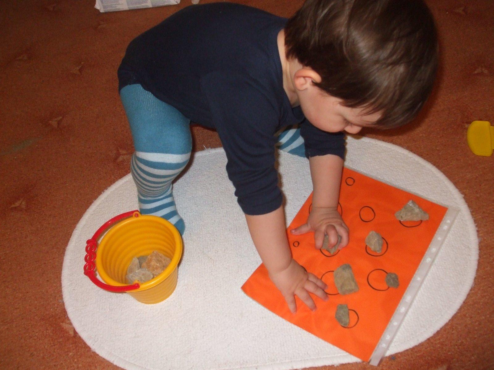 včera sme si priniesli z vonku kamienky a dnes sme ich využili na prikladanie, Adamkovi sa to tak zapáčilo, že predloha potom s nami putovala aj na ďalšiu prechádzku a museli sme ukladať aj vonku :-D
